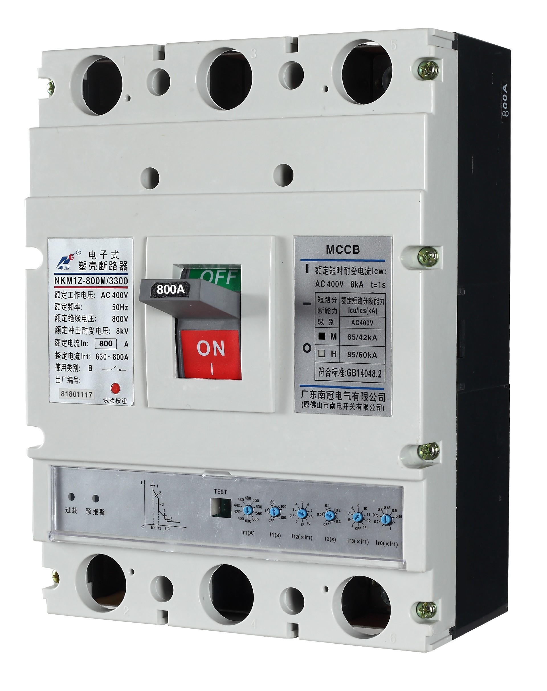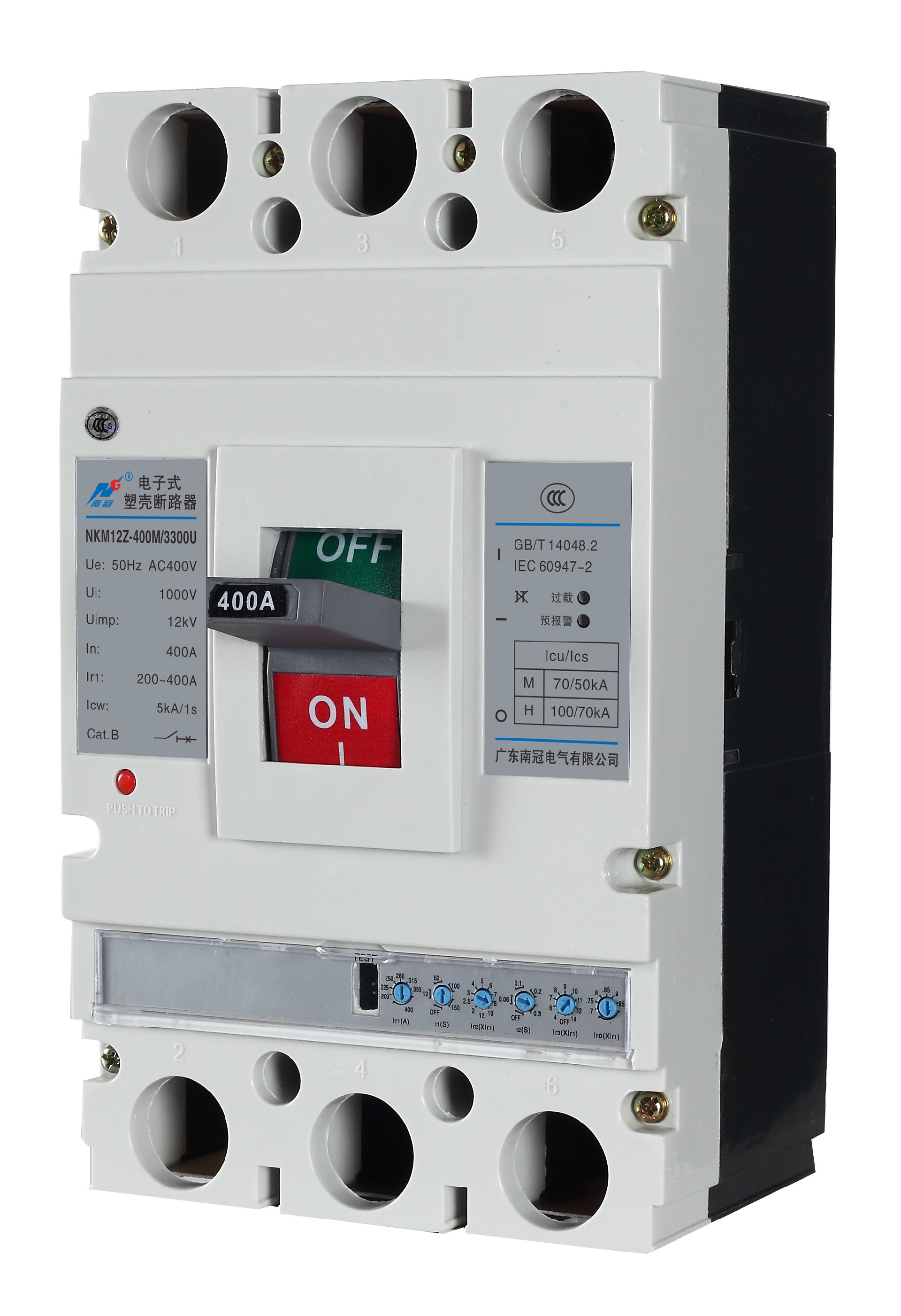 电子式塑壳断路器(以下简称断路器),是本公司研制、开发的新型断路器。其额定绝缘电压为800V/1000V,适用于交流50Hz,额定工作电压400V/690V,额定